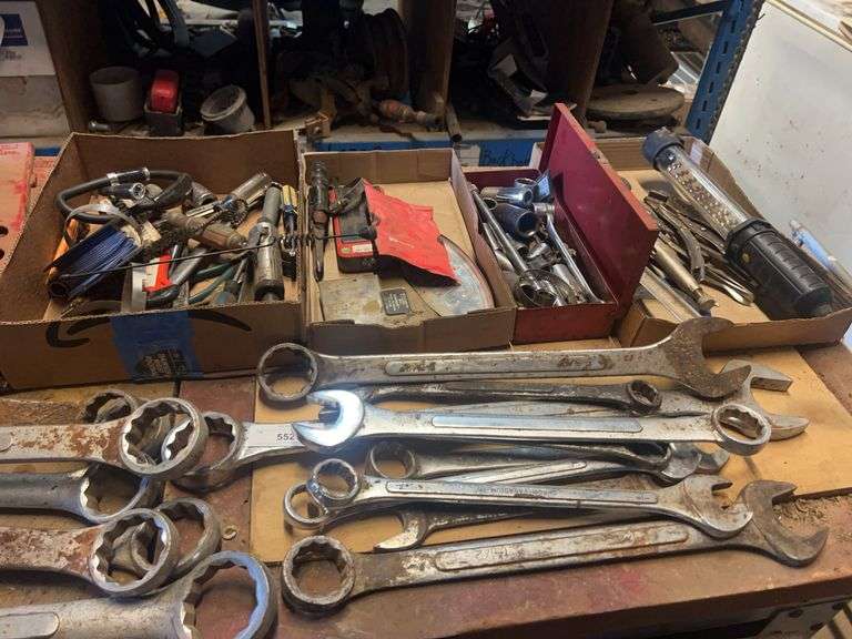LOT 165 - Large End Wrenches, Vise Grips, Sockets, Tools