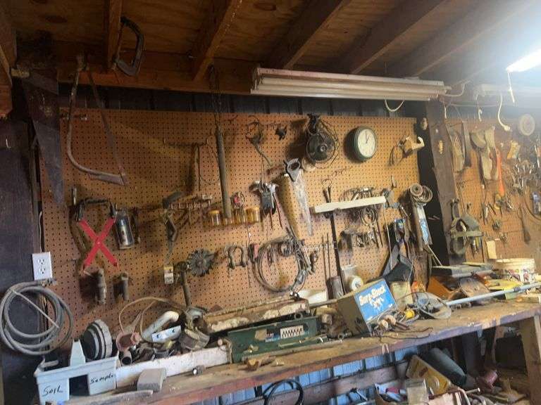LOT 203 - Contents on Tables, Back Wall & Hanging